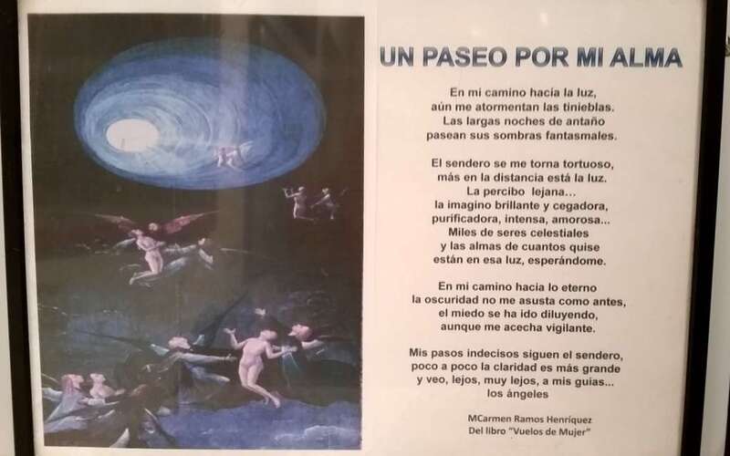 Versos escritos desde la sensibilidad y expresión lírica de la palabra recitados en este espacio dedicados a El Bosco. Mari Carmen Ramos recita el poema de su autoría Un Paseo por mi alma, del libro <>: “En mi camino hacia la luz,/ aún me atormentan las tinieblas./ Las largas noches de antaño/ pasean sus sombras fantasmales./ El sendero se me torna tortuoso,/ más en la distancia está la luz./ La percibo lejana …/ la imagino brillante y cegadora,/ purificadora , intensa, amorosa …/ Miles de seres celestiales/ y la almas de cuantos quise/ están en esa luz, esperándome./ En mi camino hacia lo eterno/ la oscuridad no me asusta como antes,/ el miedo se ha ido diluyendo,/ aunque me acecha vigilante./ Mis paso indecisos siguen el sendero,/ poco a poco la claridad es más grande/ y veo, lejos, muy lejos, a mis guías …/ los ángeles”.