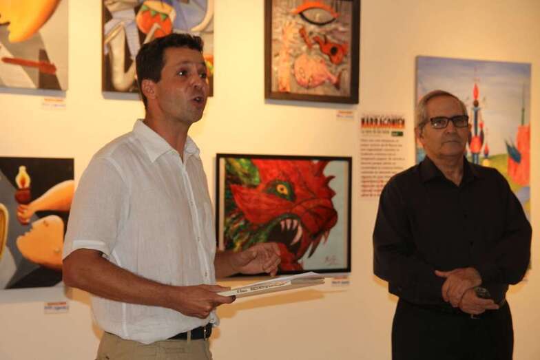 Interviene José Sosa Serván Director de la Academia que expone: “Muchas gracias a todos ustedes por acompañarnos, amigos, familiares, amantes de la cultura. Narragonien en este año 2016 ya es una realidad. Se cumple el V Centenario de la muerte de El Bosco. Pintor holandés ue reflejó en sus pinturas un mundo fantástico y real a todos los ámbitos de la sociedad. Hoy les invitamos a subirse a esta nave de Los Locos y viajar entre la moral y la sátira, entre la creatividad y el orden establecido. Cualquier cuadro que hay en esta sala no debe pasar desapercibido. Les animamos a observar los cuadros y buscar más allá del sentido estético. El Bosco no busca si es bonito o feo. Nos enfrenta a la duda, a la crítica, a la risa, al llanto. Nos enfrenta a la culpa, al perdón, a la fe y la lógica. Nos enfrenta a la hipocresía, a las guerras, al pensamiento y al sentido de la vida.