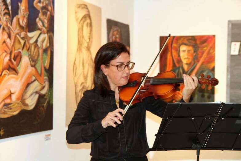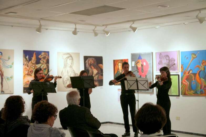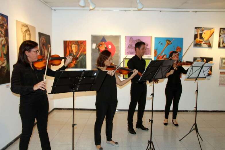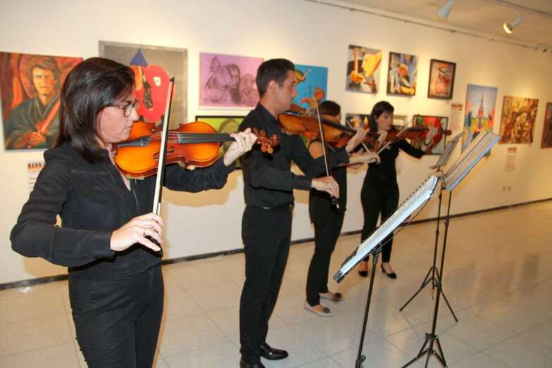 El grupo de música instrumental para violín que dirige el profesor don Sergio García cerró el acto con varias interpretaciones musicales. Se ofreció un brindis y la visita de la muestra que ofreció el atractivo artístico de un viaje por la obra de El Bosco hacia Narragonien, en Los Llanos de las Delicias, dejándonos llevar por el sueño de los locos hacia otros mares de locura como bien decía la canción, retomando los paisajes de nuestra niñez.