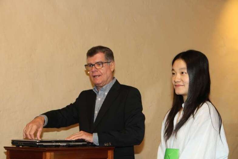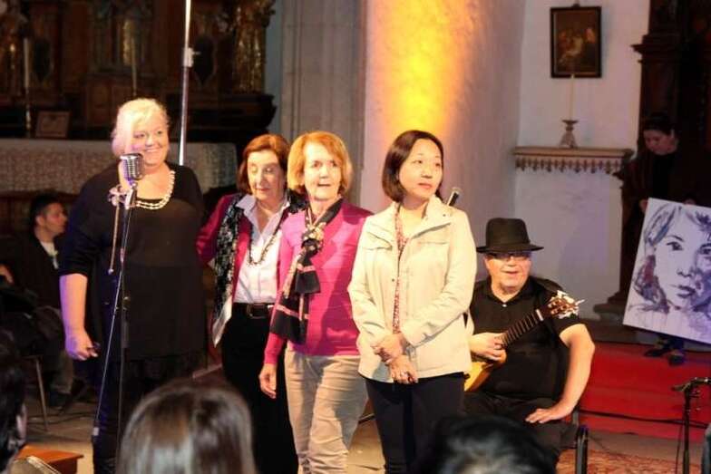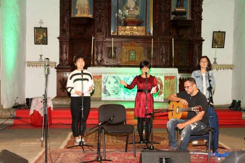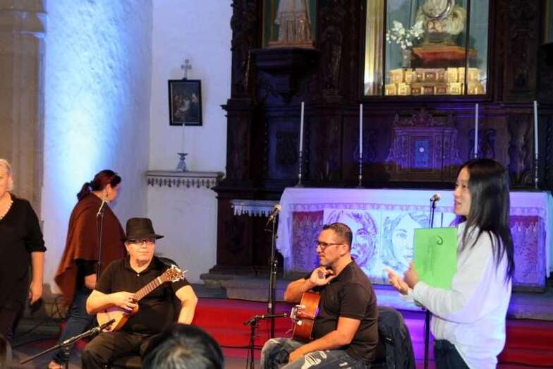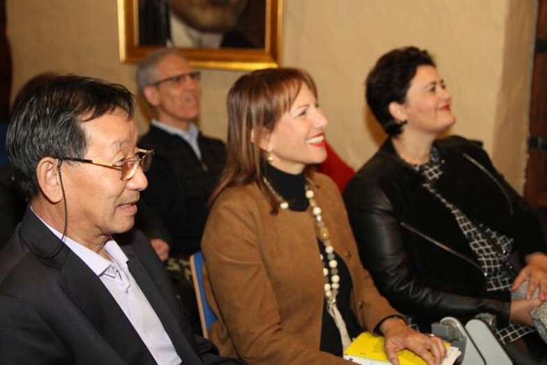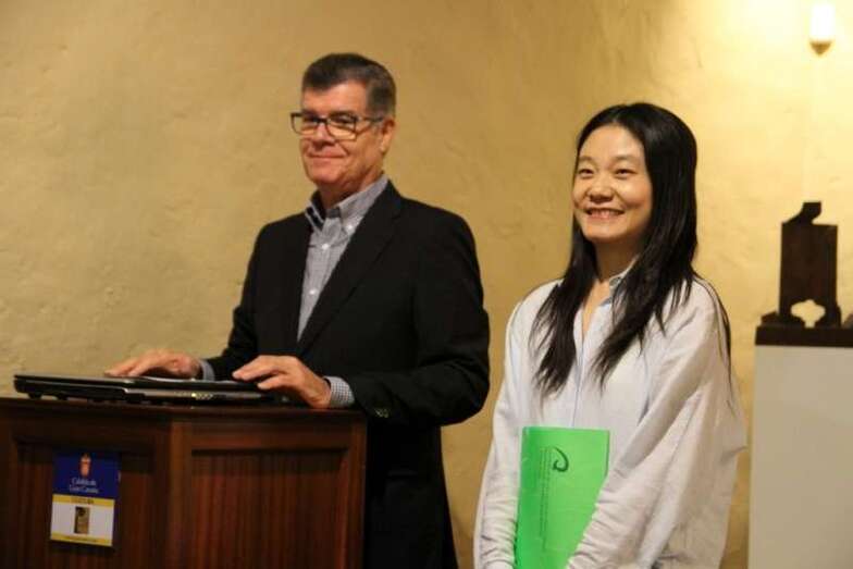 La ermita de San Francisco fue el escenario de la interpretación de ‘El olivo de mis sueños’, uno de los poemas más famosos de Sanmao, recitado por la directora del Instituto Confucio de la Universidad de Las Palmas de Gran Canaria, Liu Xucai, con la colaboración de Pei Ziyi y Zhang Ping, profesoras de esa institución académica.