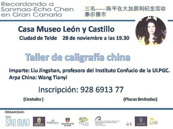 Telde.- La Casa-Museo León y Castillo de Telde albergará el próximo lunes, 28 de noviembre, un taller de caligrafía china. Una actividad gratuita, que se desarrollará a partir de las 19.30 horas y que forma parte de la ruta Recordando Sanmao-Echo Chen en Gran Canaria.