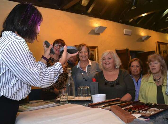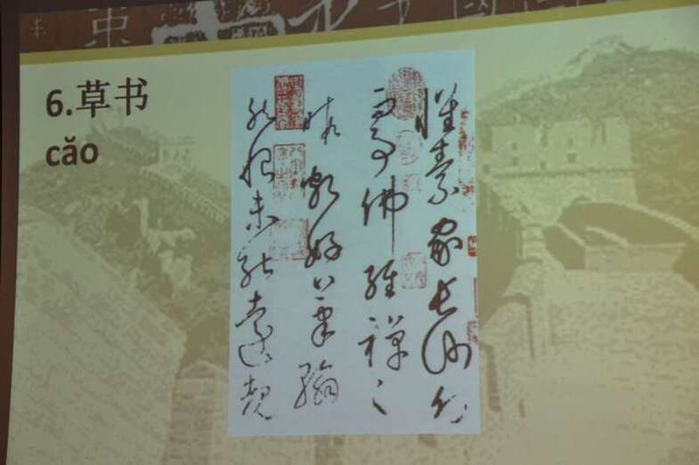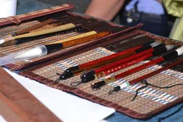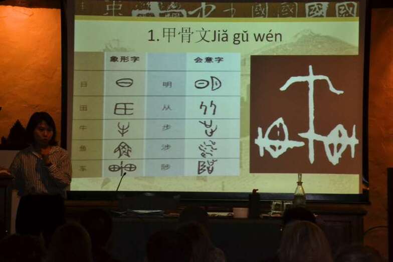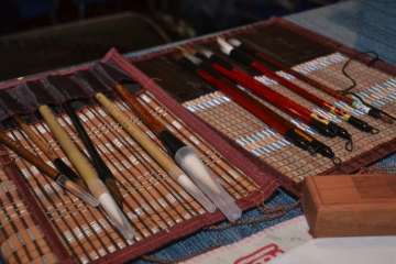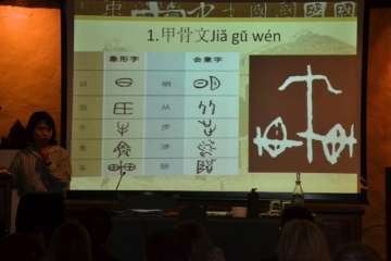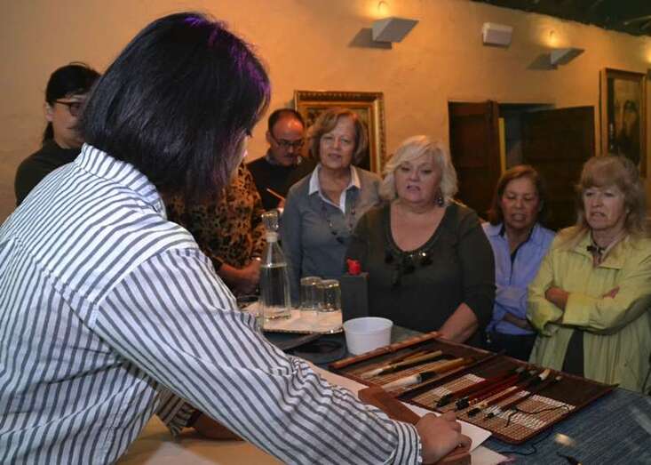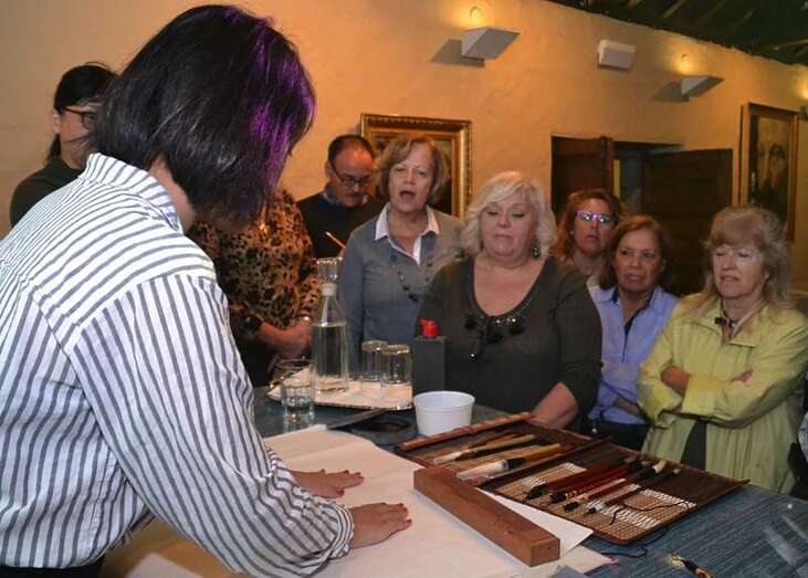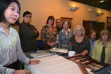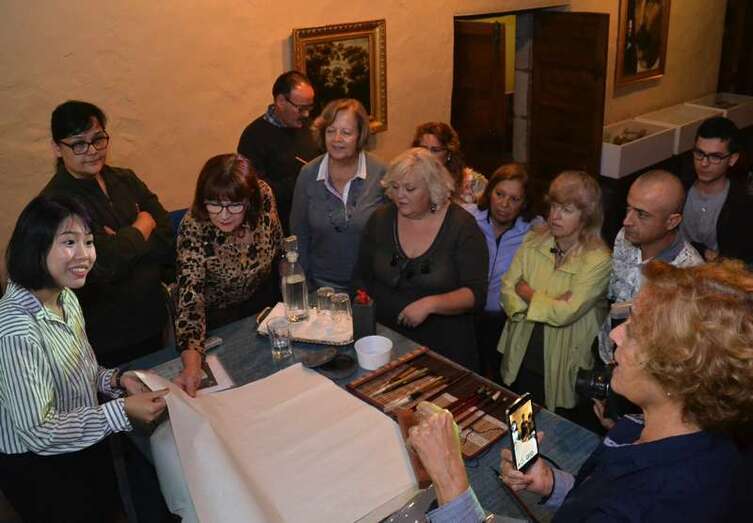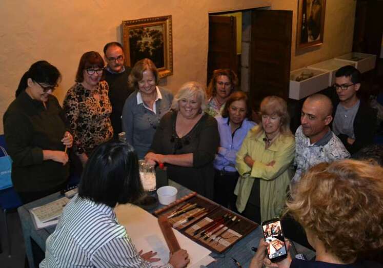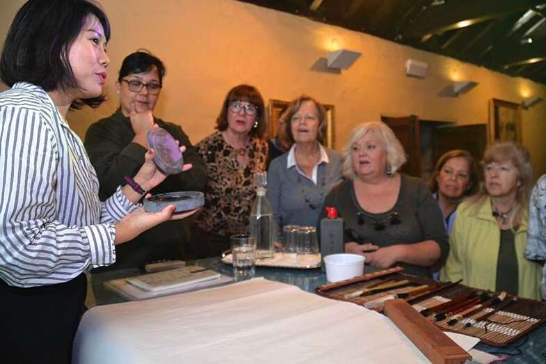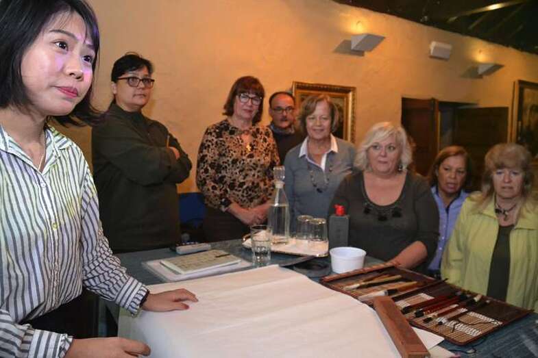 Entre otras cuestiones, el grupo pudo descubrir las seis modalidades que existen en caligrafía, a base de complejos símbolos, y los pinceles, tintas, papeles de arroz y demás útiles que se emplean para plasmar estos trazos ancestrales.