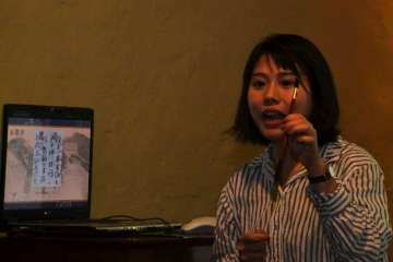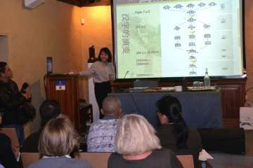 La profesora Liu Jingshan muestra al grupo de alumnos los útiles de escritura china (Foto TA) La profesora Liu Jingshan muestra al grupo de alumnos los útiles de escritura china (Foto TA)