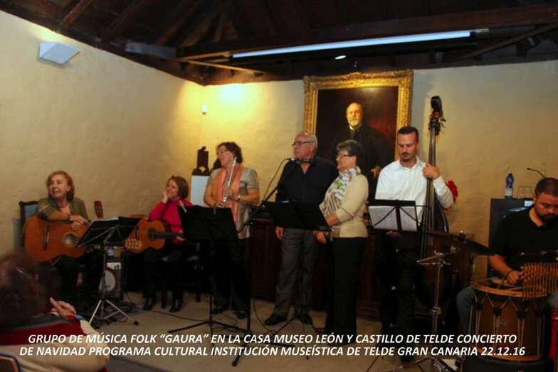 El teldense Grupo de Música Folk Gaura, que dirige la compositora, escritora, poeta, dinamizadora cultural, Pino Monzón Padrón, directora de la Agrupación Folclórica Arnao, ofreció la noche del jueves 22 de diciembre un concierto en el salón de actos de la Casa Museo León y Castillo de Telde dependiente de la Red de Casas Museo del Cabildo de Gran Canaria, llenando el aforo con un gran éxito logrado una vez más, deleitando al público asistente por el variado repertorio de temas musicales que seleccionaron para la Navidad 2016.