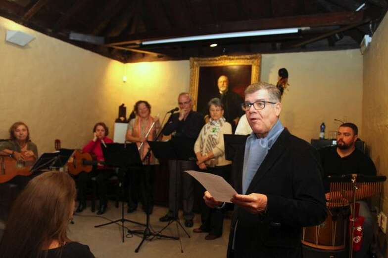 El director conservador de la Casa Museo, Antonio María González Padrón, da la bienvenida al Grupo Gaura, al público asistente que llenaba el salón de actos de la institución y, expresa: “Buenas noches y bienvenidos. Después del intenso trabajo de búsqueda y recopilación se empezó a gestar el grupo de música folk Gaura hace dos años. Poco a poco fueron preparando los temas con arreglos, adaptaciones y aprendizaje apostando por un tipo de música que casí ha quedado relegada al olvido. Aunque algunas piezas han tenido la fortuna de haber sido recogidas en el Cancionero Popular Español. Son cantos tradicionales como romances y canciones infantiles de otra época y que quizás algunos hemos tarareado alguna vez o escuchado a nuestros mayores.