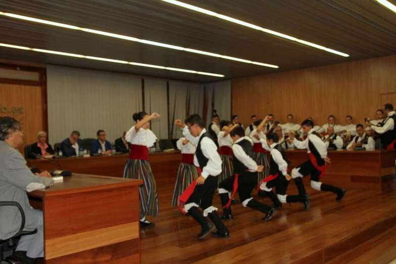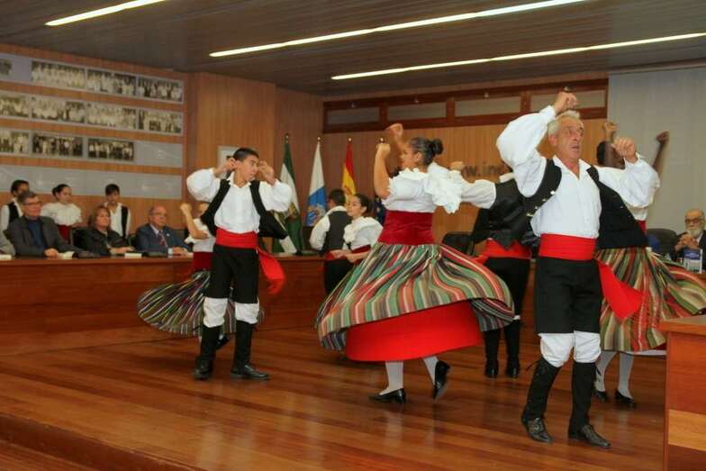 Se inicia el acto con la actuación de la Asociación Cultural de Coros y Danzas de Ingenio que preside y dirige don David Castellano González, agrupación de cuerdas, voces y cuerpo de baile que ejecutan varias piezas musicales folclóricas. Finalizada esta muestra de bailes folclóricos canarios, interviene doña Ana Hernández, expresando su bienvenida y agradecimiento a todos los presentes informando que podrán ver este acto en los medios de comunicación: