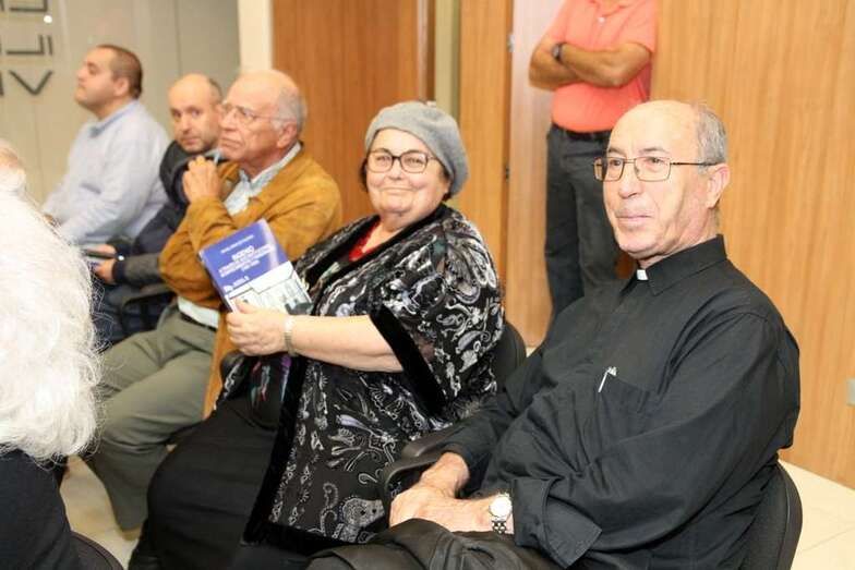 Bien, no sé si me queda más gente por saludar, me disculpan a quien no nombre. Por aquí está mi amigo Carmelo, Concejal del Ayuntamiento, al cual me honro con su amistad que también está siempre dispuesto a cualquier cosa que le proponga con el cual he colaborado durante tres años en las jornadas. Me faltaba precisamente una representación importante de lo que ha sido la evolución de Ingenio que han sido sus párrocos, aquí tenemos al párroco de Nuestra Señora de La Candelaria, don Victorio Lorente, y también al amigo Suso Vega, nuestro paisano, en la actualidad párroco en el Cruce de Arinaga, persona interesada por su historia y de mi amistad desde niño, colaboramos juntos el pasado año en el Centenario de la parroquia.