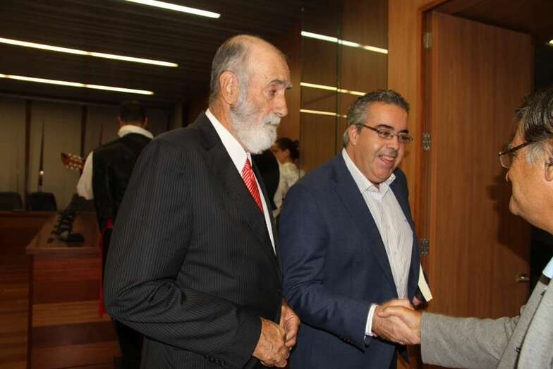 Yo, en esta etapa de mi vida, vamos a llamarle segunda juventud, por emplear un eufemismo y no otra palabra, yo he encontrado en ellos, aquí hay una parte representativa, no solamente ese apoyo intelectual de alguna manera, ese apoyo de hacer que uno tire adelante, sino que he encontrado en todos ellos, una entrañable amistad que ha perdurado a lo largo de los tres años que ya llevo casi como Cronista Oficial. Aunque Pedro lo nombró antes, yo lo nombro otra vez porque creo que lo merece, tenemos la presencia de nuestro presidente, Pepe Luján, la del Secretario, aquí el amigo Pedro, el Cronista Oficial de Las Palmas y de la isla de Gran Canaria, Juan José Laforet, la amiga Matesa, Cronista de Valsequillo, mi amigo Antonio González Padrón, Cronista de Telde, con el cual últimamente hemos tenido algún disgustillo por la cuestión de Gando. Disgustillo no, desde luego que no, él sabe que el disgustillo es por otra cosa.