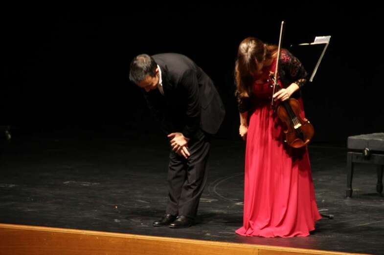 Telde.- Los virtuosos teldense Irina Peña y el pianista Ignacio Clemente deleitaron a los asistentes con un concierto para violín y piano el pasado miércoles, 25 de enero, en el auditorio de Teror.