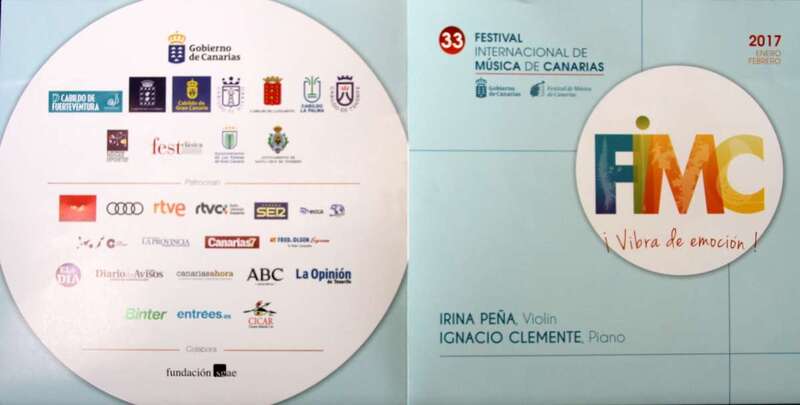 Enmarcado en el programa de actuaciones musicales en la edición 33 del Festival Internacional de Música de Canarias (FIMC), que se celebra durante los meses de enero y febrero de 2017, la noche del miércoles 25 de enero los artistas teldenses, violinista Irina Peña y pianista Ignacio Clemente, ofrecieron un concierto para violín y piano en el Auditorio de Teror integrado en el recorrido musical que por las islas ha sido programado por el FIMC, que les lleva por las hermanas islas de Tenerife, actuación que tuvo lugar el martes 24, en el Auditorio Teobaldo Power de La Orotava. Fuerteventura, jueves 26, Auditorio y Palacio de Congresos. La Palma, el sábado 28 en el Museo de la Casa Roja de Mazo. Lanzarote, domingo 29, Auditorio de Los Verdes. La Gomera, sábado 4 de febrero en el Auditorio Insular.