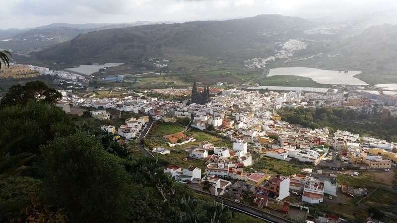 Como en cada salida y accediendo por la autovía, el Cronista adelantó durante el trayecto una importante información histórica y características del entorno geográfico y poblacional prehispánico del topónimo aborigen Arehucas. Asentada en el norte en un valle y al pie de la Montaña de Arucas, un antiguo volcán con excelentes vistas al litoral nordeste, y por el noroeste hacia los valles, montañas y cumbres del interior de la isla. El acontecimiento de la Batalla de Arucas en la que el caudillo, el guerrero y valiente Doramas, líder de la resistencia aborigen, fue muerto por la lanza traidora de los conquistadores castellanos. Uno de los principales cultivos iniciales en esta zona fue la caña de azúcar que data desde el siglo XV. Ya desde el siglo XIX dos ciudades van a destacar por el aguardiente y el ron de Telde con su fábrica de San Juan, y la de Ron Arehucas. Actualmente la de Arucas es emblemática su fábrica de ron y ron con miel, que distribuye y comercia desde su centro al exterior suministrando la caña cultivada en Granada, y que para Canarias ha representado una economía importante.