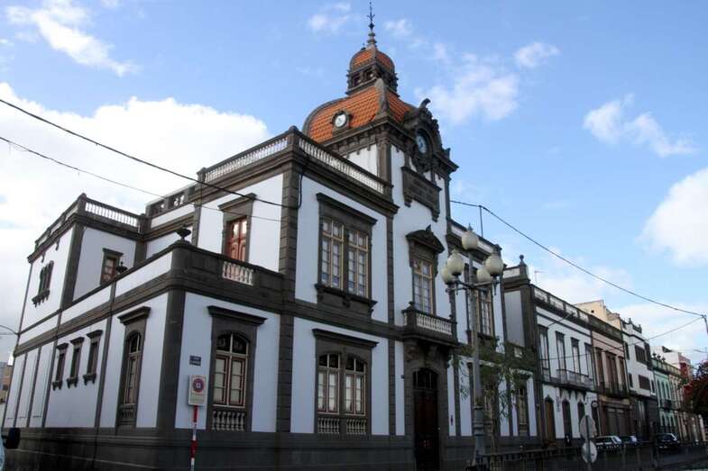 De las primeras ermitas que se levantan en Arucas, la de San Pedro Mártir, como la misma que se denomina en Telde, de San Pedro Mártir de Verona. En su interior había un tríptico de origen flamenco no de la línea de Van Cleve en Agaete, ni como el de San Juan de Telde, pero aquel se perdió, existiendo una reproducción realizada en 1990 por restauradores de la Casa de Colón, Julio Moisés y Pilar Leal, propiedad de la propia Fábrica que utiliza para actos culturales. Enfrente de la Fábrica el primer lugar donde se crearon las Escuelas Cristianas de los Hermanos de San Juan Bautista de Lasalle. La alta burguesía de Arucas queriendo dar formación superior a sus hijos, buscó una orden religiosa ubicada en Arucas y se hicieran cargo de un colegio para la educación de sus hijos y evitar que no se instalaran fuera de Arucas. En 1894 alcanza la categoría de ciudad por gracia de la entonces reina regente María Cristina de Habsburgo-Lorena, en mérito a su crecimiento y laboriosidad. La arteria principal de Arucas, por aquel entonces Calle Real, pasó a denominarse de León y Castillo en agradecimiento a las distinciones conseguidas por el prócer, político y diplomático teldense don Fernando León y Castillo por el desarrollo de la que fue villa a ser ya Ciudad de Arucas. El acto se celebró con un homenaje a modo de manifestación en procesión con el cuadro de don Fernando, pintado por Massieu Falcón, por la calle que hoy rememora su persona.