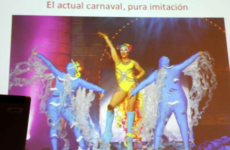 Ante un patio de butacas prácticamente lleno, el también director del centro museístico dedicado a los hermanos León y Castillo buceó entre recortes de prensa y datos históricos para explicar cómo las carnestolendas locales han pasado de ser unas juergas mucho más abiertas, familiares, económicas y contestatarias (incluso durante el franquismo, a otras más comerciales y controlada por el poder.
