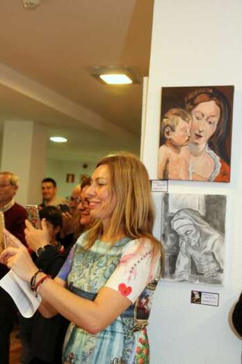 La pintora y poeta participante en esta exposición Makita Alonso Benítez, recita los versos de su poema dedicado a Murillo: “El mejor pintor barroco y apreciado fuera de España./ El arte de Murillo me envuelve la mente./ Majestuoso, carisma y sensibilidad; grandeza./ Pintor de bóvedas celestes, maravillosas como el universo./ Contemplación luminosa de mujeres pícaras, princesas, niños,/ bodegones, jóvenes y santos./ Vírgenes de piadosa dulzura; ternura infinita, sosegada belleza./ Gran espiritualidad como la Inmaculada Concepción./ Amor, devoción y dulzura mística que entiende el corazón./ Murillo ve revolotear torbellinos alrededor de sus vírgenes,/ enjambres de radiantes ingenuos niños convertidos en ángeles./ Querubines que tejen guirnaldas de flores alegres y vistosas/ llenos de luz y dulce expresión del color./ Conventos e Iglesias, retablos pintaba y el Barroco capturaba./ Sorprendido por la muerte pintando para los Capuchinos de Cádiz,/ Murillo, quedó vivo en el recuerdo de sus grandes obras./