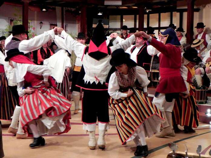 La agrupación Entre Amigos, con más de treinta años de trayectoria, ofrece canciones como la Folías, Tanganillo Santo Domingo y Tajaraste, Berlina de Tijarafe, Seguidillas de Lanzarote, Sorondongo Majorero, Tango Guanchero, Santo Domingo de Gran Canaria, Malagueñas, Pobre pescador, Cambullonero, Somos costeros o una Isa popular. La agrupación creada en el pueblo de Jinámar está dirigida actualmente por Jonathan Peña, en la parte musical, y Paqui Suárez, el baile.
