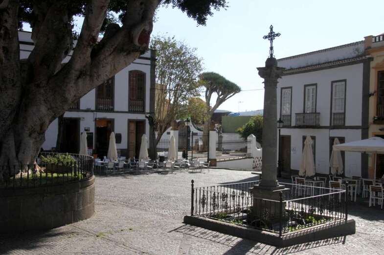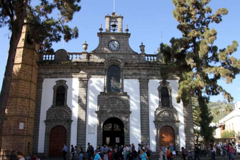 Desde la salida de Telde con la asistencia del Cronista Oficial, D. Antonio María González Padrón, director de la Casa Museo León y Castillo, que en el trayecto adelantó información sobre la historiografía y advocación de los canarios a Nuestra Señora La Virgen del Pino. La tradición de la Virgen del Pino con la representación de su aparición en un pino, árbol característico de nuestra geografía cumbrera isleña, es muy antigua. Hay ya una advocación como la más antigua que procede de la localidad de Vinuesa, Provincia de Soria, cerca de la Laguna Negra, donde tienen como patrona a Nuestra Señora del Pino. En Gran Canaria nos viene esta devoción de una ciudad importante desde el siglo XV, el pueblo de Niebla, cerca de Moguer, en la provincia de Huelva. En el siglo XIV los mallorquines forman la ciudad y Obispado de Telde, de ahí que seamos la primera ciudad y el obispado más antiguo de Canarias. Desde el lugar de Niebla procede la tradición, donde celebran a su patrona, Nuestra Señora del Pino; creemos que fue alguien de esa localidad andaluza de Niebla, recordemos que los de Moguer fundaron Telde, quien vino durante la conquista y trajo la advocación a Nuestra Señora del Pino, que hoy la vemos vestida con ropajes a la manera barroca del siglo XVII-XVIII, pero que en verdad, la Virgen es talla de madera vestida de estilo gótico tardío.