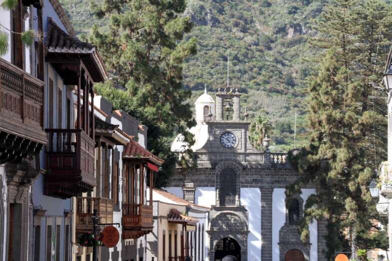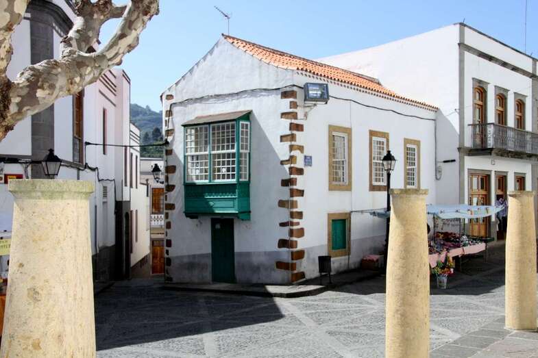 Sobre la arquitectura urbana antigua de Teror se puede observar el deterioro que acusa la construcción por estar edificada sobre terrenos arcillosos, tierras blandas que afectan a su cimentación, como se aprecia igualmente en la fachada de la Basílica. Situados ante una de las casas del casco histórico antiguo, el que fue Hotel Ruiz, lugar de turismo antes de que se pusiese de moda el sur de la isla, cuando se venía a los hoteles de Santa Brígida, Teror u otros lugares del Norte Centro. Teror tuvo varios hoteles y éste fue uno de ellos, hoy casa  declarada Bien de Interés Cultural. Los terorenses se han mantenido en esta zona urbana, hoy patrimonial,  donde la tradición señalaba donde se había aparecido la Virgen, los fines de semana se concentran mercadillos, puestos de venta, gastronómicos, artesanía, recuerdos religiosos de la Virgen, etc.