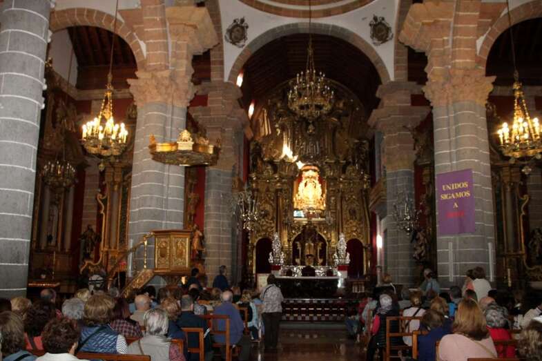 La visita finaliza en el Museo de Arte Sacro y al camarín de la Virgen ante el trono de baldaquino de plata, entre el sol y media luna, con el niño que mira al pueblo, en la belleza que el conjunto de su propia imagen y foco del entorno artístico sacro que rodea este lugar, nos trae la estampa y el gran escenario de su festividad en el recuerdo de multitudes que se acercan hasta este santuario en septiembre, y en las bajadas históricas que han tenido lugar a la capital, una de las identidades religiosas que los canarios sienten por su Virgen del Pino.