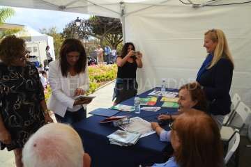 Una actuación de la Banda Municipal de Música, una sesión de teatro negro y el discurso de la alcaldesa Carmen Hernández marcaron el inicio de esta muestra que cuenta con 10 stands. Nueve de ellos reservados a editoriales y librerías, que durante estos tres días comercializarán sus publicaciones con descuentos, y otro para la firma de autores como la escritora teldense Pino Monzón, que esta mañana estuvo junto a otras mujeres estampando su rubrica en sus obras.
