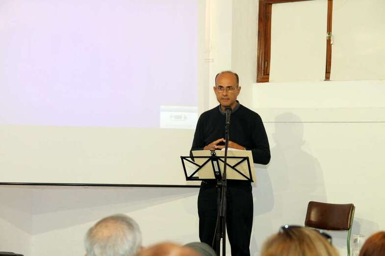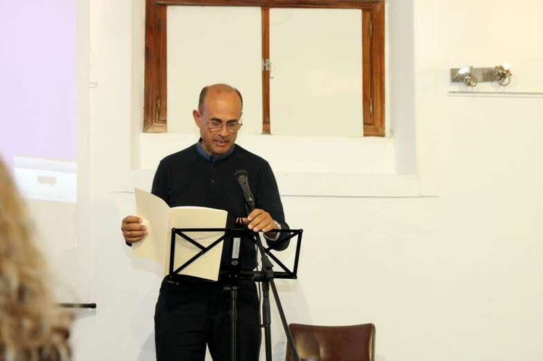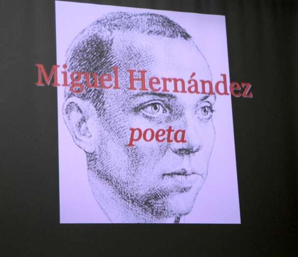 Con la proyección del extraordinario video elaborado por Ildefonso Rodríguez Ramírez, trabajo de máxima calidad basado en la interposición de imágenes musicadas, con la biografía y versos de poemas de Miguel Hernández, que realmente nos hizo vibrar ante sus versos en los labios de otro poeta, uno de los nuestros, recitados con la voz del escritor y poeta teldense Julio Pérez Tejera, nos conducen y sitúan por paisajes escogidos de nuestra propia isla, con una exquisita complicidad del color, la palabra y la música del excelente video gráfico, para llegar a entender, sentir y contextualizar el espíritu del mensaje poético que en cada reflexión, inspiración, causa o sentimiento llevó al joven poeta a expresar lo sublime de sus inquietudes, pensamientos y sensibilidades ante los avatares de su corta existencia, como en los versos de Menos tu vientre, Nana de las cebollas, Andaluces de Jaén, Elegía a Ramón Sitjé, El Rayo que no cesa, o el de la Canción última.