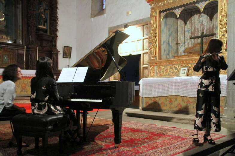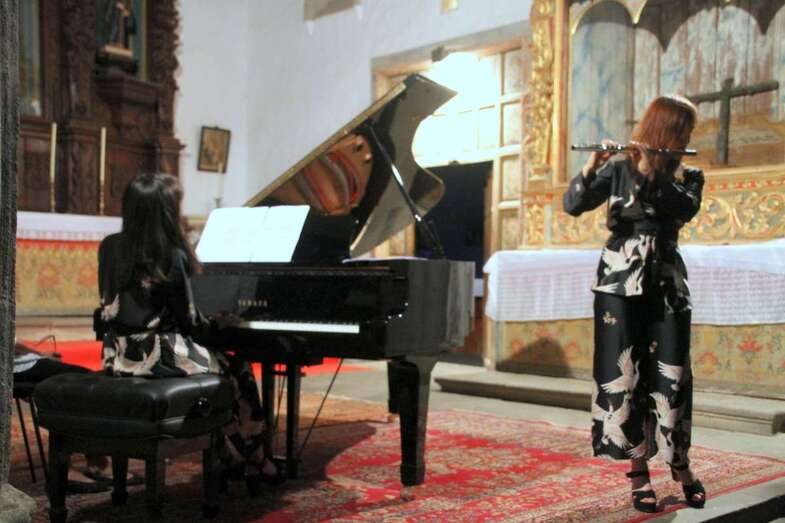 Un concierto en el que realmente pudimos escuchar el repertorio de unas composiciones de obras brillantemente interpretadas en el marco sacro escénico de la iglesia conventual de San Francisco, donde los sonidos de la flauta y el piano con arreglos a las partituras escogidas y perfectamente interpretadas por Cristina y Almudena, nos dejaron sentir, vibrar y emocionar el amplio espectro musical de dos instrumentos que bajo las bóvedas artesonadas, bajo los altares, arcos y columnas en piedra de labrantía, sobre las losas seculares, que a lo largo de las dos naves ocupan los espacios de este secular templo franciscano, arquitectura y arte musical conjugaron el verdadero patrimonio de la grandeza de la creación humana.