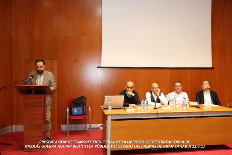 Telde.- La Biblioteca Pública del Estado, en la capital grancanaria, acogió el pasado viernes la presentación del libro Sansofé En Defensa de la Libertad Secuestrada, del escritor Nicolás Guerra Aguiar, colaborador de varios medios de comunicación, entre ellos TELDEACTUALIDAD.