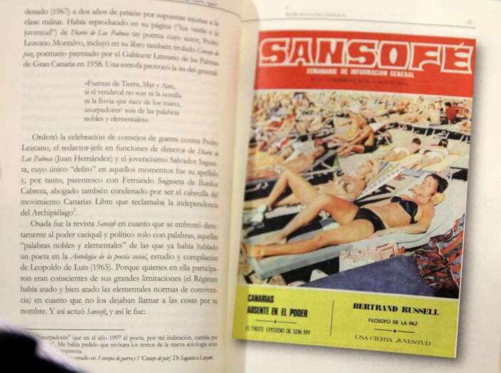 Por tanto y quiero insistir en ello, este libro es mi homenaje a los hombres y mujeres que trabajaron en Sansofé, que no cobraron un duro, que tuvieron problemas, que fueron señalados, que fueron, incluso controlados, desde distintos enfoques, de distintas calles, pero hicieron posible Sansofé, a pesar de todo porque en ello anidaban palabras, sin rencores, pero palabras que hablaban de libertades, de democracia, de alcaldías y presidencias de Cabildo electas por la voluntad popular. Sansofé, por tanto, es memoria histórica, relacionada y comprometida con Canarias.