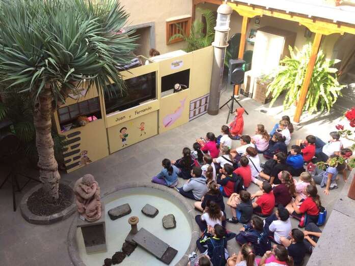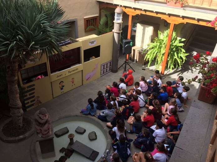 La Casa-Museo León y Castillo de Telde fue el epicentro de esta celebración en el municipio. Un grupo de escolares se lo pasó de lo lindo con las sesiones de Cancionero Isleño con Juan y Fernando. Una propuesta lúdico-didáctica de marionetas diseñada y ambientada especial para el recinto de San Juan que dirige el también cronista oficial de la ciudad Antonio María González Padrón.