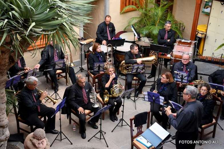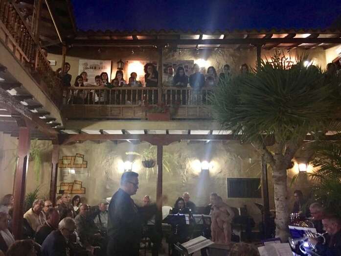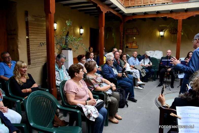 Y con la caída de la noche, bajo la tenue luz de la luz, el público adulto disfrutó de un concierto de película en el patio del Museo a cargo de la Banda Municipal.
