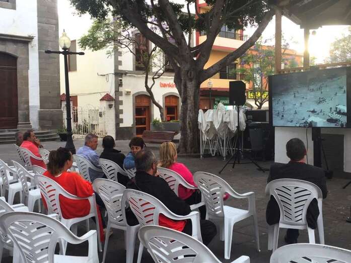 El publico que se congregó en la plaza, entre los que se encontraban la consejera teldense Minerva Alonso, los concejales Celeste López y Gregorio Viera, y varios turistas, pudo disfrutar de hasta siete documentales realizados por alumnos del CEIP Antonio Padrón de Gáldar y premiados en el IV Ciclo de Cine de Agaete el pasado año: Primer ascenso de la UD Las Palmas a Primera División de 1951, Gran Canaria de 1946, Cumbres de Gran Canaria de 1965, Plaga de langosta de 1958, Aeropuerto de Gando de 1960, Yacimiento de Cuatro Puertas de 2001 y el corto Don Quijote de la Guancha.