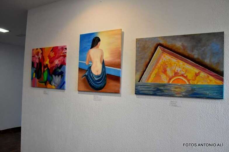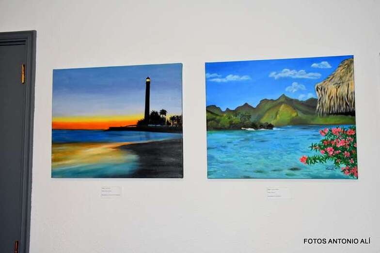 Telde.- Los alumnos del taller de pintura de Nadia Brito muestran desde este viernes, 26 de mayo, sus obras en una exposición pictórica que se exhibe en el Teatro Municipal Juan Ramón Jiménez de Telde. TA ofrece reportaje gráfico.