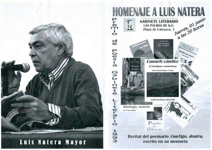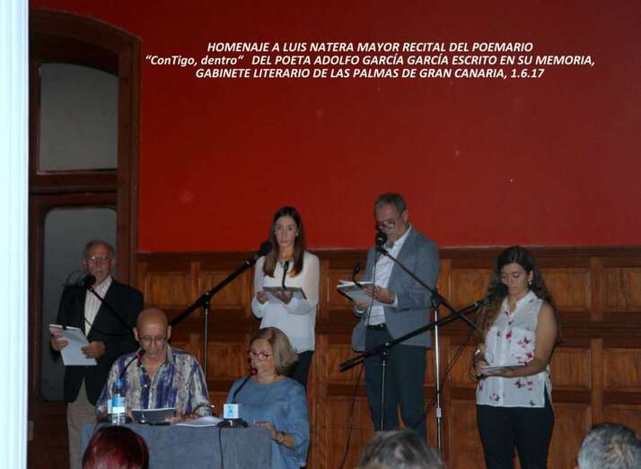 De los numerosos recitales poéticos que con motivo de la presentación de poemarios nuevos, o propiamente recitales, a los que con frecuencia suelo asistir, el ofrecido en el Salón Oriente del Gabinete Literario de Las Palmas de Gran Canaria, el jueves 1 de junio, ha sido, con mucho, uno de los más profundos que me han llevado a la reflexión, como mensaje poético en los caminos del alma, dedicados al Homenaje a Luis Natera, el poeta de la voz profunda y el verso interior a flor de piel, o como en su magnífico artículo, Ida y Vuelta, “Félix Francisco Casanova y Luis Natera: el Club de los Poetas Muertos”, en el periódico La Provincia del 29 de mayo, de la sección Gente y Culturas, y en su Blog La Literatura y la Vida, el periodista y escritor,  Luis León Barreto, menciona en referencia a la obra y personalidad de Natera: “Luis Natera fue el poeta de la melancolía y de la reflexión del mar. Poeta de voz honda, poeta de los microcosmos insulares y de las maguas sutiles. La esposa, los hijos, la idea de Dios son algunos de sus ejes. La muerte como derrota a través de una voz intimista, clásica y ensimismada. El mar como regazo y como sepultura”.