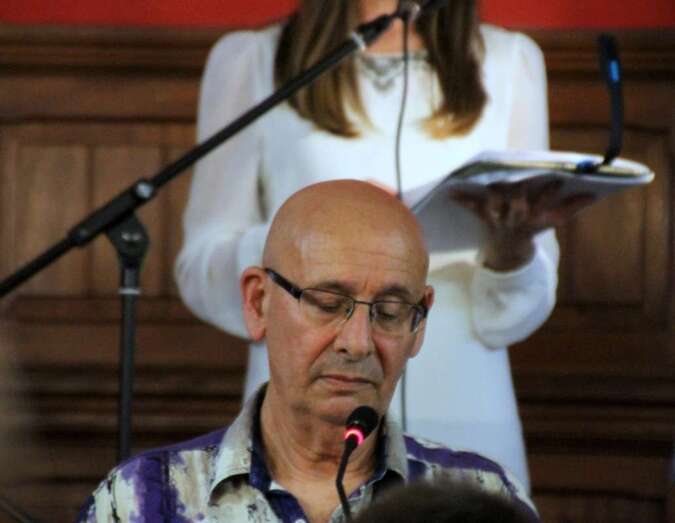 Adolfo García, coordinador del acto abre el turno de recitados con uno de los poemas de su producción del libro ConTigo, dentro, Anteayer: