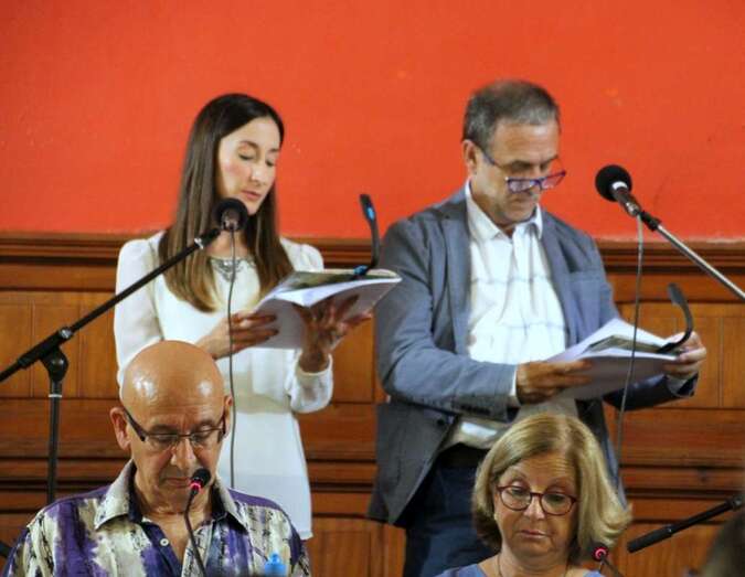 Reflexión, quizás, que me ha llevado a medida que transcurría la singular escenificación de este recital, de muy buena caracterización y variación de las cinco voces que apartándose de la manera clásica del recitado, han puesto el acento interpretativo y buena lectura necesaria en cada verso, para no quedarnos solo en el intento de comprender sus impulsos, sino  entrar en la propia poesía mística de un poeta ausente, y revivirla con la actual de un poeta presente, en el poemario inédito “ConTigo, dentro”, obra de Adolfo García, con la voluntad en esta velada de ofrecérselo al amigo Luis Natera como recuerdo a sus magníficos poemas espirituales y místicos.
