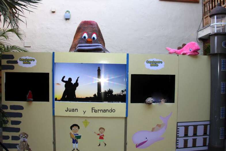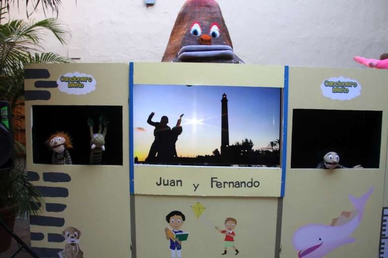 Espectáculo audiovisual representado con ocho títeres y tres actores que mueven el espectáculo. Se ha representado por las tardes en funciones escolares. Hoy el “Cancionero Isleño con Juan y Fernando” se ha representado al público en general desde la Casa Museo León y Castillo. Gracias”.