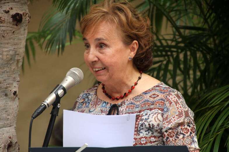 Pino Monzón Padrón, alma mater de este Encuentro de Habaneras, folclorista, compositora, escritora, pedagoga, ex directora durante más de treinta años de la Agrupación Folclórica Arnao, con un amplio repertorio de su creación musical llevada a la grabación de varios CDs, el último El Seis de Copas, presentado recientemente en el Teatro Juan Ramón Jiménez de Telde. Actualmente dirige el Grupo de Folk Gaura, cuenta en su haber con numerosos premios y reconocimientos institucionales por su labor en pro de la cultura e identidades canarias. Dedica este Encuentro de Habaneras al recuerdo y abrazo de dos orillas, de dos distancias, de dos culturas, de dos maneras de manifestarse artísticamente, la de ida en el corazón y las manos de los que marcharon, y los de vuelta que trajeron el acento, la palabra retomada, no cambiada, y el espíritu y esperanza del regreso a su tierra isleña querida.