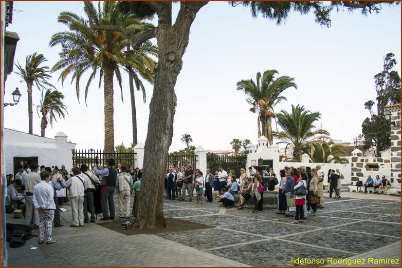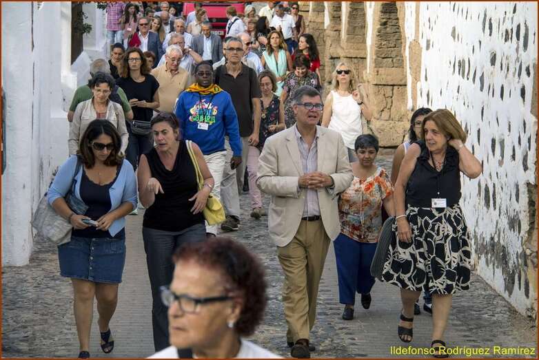 Luego, tras la comunicación, el cronista oficial de Telde y director de la Casa-Museo León y Castillo, Antonio María González Padrón, guió una visita guiada por el casco histórico de Telde y la Casa-Museo León y Castillo. En la plaza de San Francisco, los asistentes fueron agasajados con la música tradicional canaria interpretada por la agrupación folclórica Arnao, de Telde