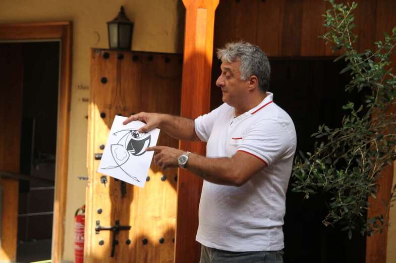 El artista de manera detallada explicó los conocimientos básicos de dibujo y observación del motivo o personaje a caricaturizar, así como las líneas y trazos elementales para definir las características principales y rasgos naturales que dan señas de identidad y carácter al personaje. Aprendizaje del cómo y porqué la caricatura exige conocer al protagonista a dibujar para conseguir formas y volúmenes peculiares, con la observación de la imagen, mediante láminas ya elaboradas o ejemplos de otros trabajos que el artista repartió por las mesas de trabajo, como la figura del insigne artífice de obras civiles en Gran Canaria, el Puerto de La Luz, el Faro de Maspalomas y otros proyectos importantes para Gran Canaria, el ingeniero Juan de León y Castillo a quién se le dedica una sala en la Casa Museo teldense.