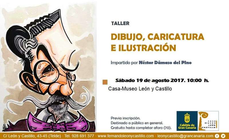 Como continuación de las ofertas culturales de verano de la Casa Museo León y Castillo de Telde, la mañana del sábado 19 de agosto se ofreció en el patio central de dicha institución museística un Taller de Caricaturas, impartido por el artista caricaturista canario Néstor Dámaso del Pino, recientemente galardonado en el Gran Premio del Festival en Rumanía, International Portrait Festival 2017 “Mihai Eminescu”, al presentar la caricatura del mismo poeta rumano Mihai Eminescu (1850-1889), por la que le fue concedido el Diploma con reconocimiento internacional.