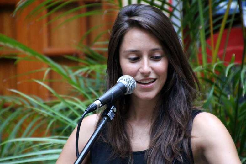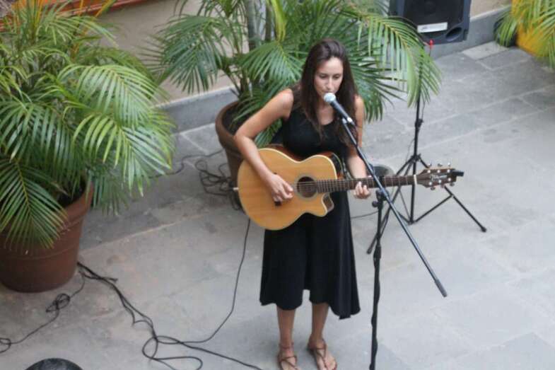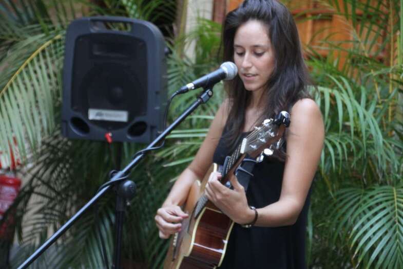 Lucía Rodríguez natural de Adeje en Tenerife, ocupa con su guitarra el centro del patio para iniciar su repertorio de cantautora que comienza desgranando unos primeros versos en Impulsito, cantados como presentación para seguir temas de amor y desamor, reivindicativas, con tristezas y alegrías, recuerdos y en clave de humor. El cotidiano sentir de la Hora Punta. Distancia, canción creada durante su estancia de estudios en La Laguna, dedicada a una buena amiga.