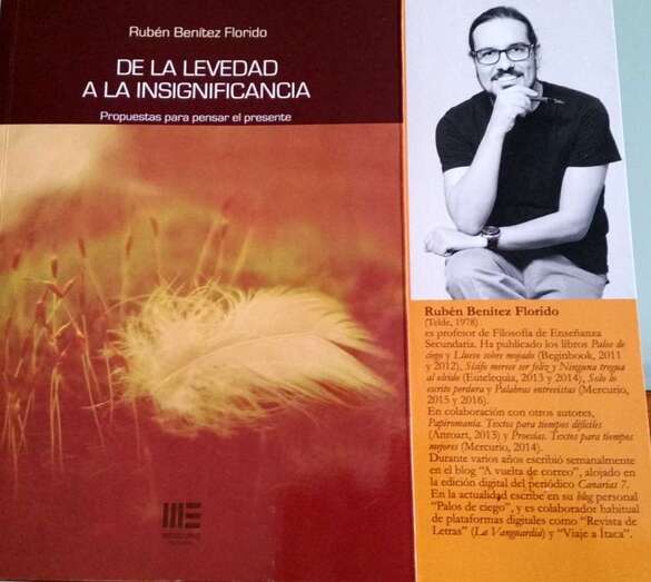 Telde.- El teldense Rubén Benítez Florido, escritor y profesor de Filosofía, presentó el pasado jueves, 21 de septiembre, su último trabajo literario: De la Levedad a la Insignificancia. Propuestas para pensar el presente. Un libro que vio la luz en la Casa-Museo Pérez Galdós, en el capitalino barrio de Vegueta, en un acto del que el colaborador de TELDEACTUALIDAD Jesús Ruiz da cuenta en una crónica acompañada por un reportaje gráfico.