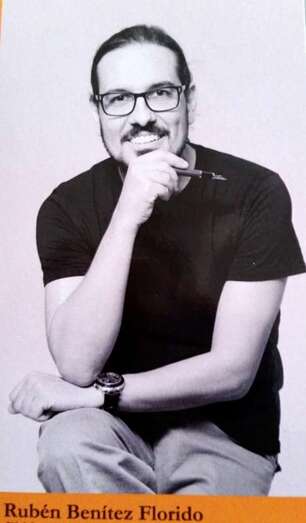 Rubén Benítez Florido, natural de Telde, escritor, profesor de Filosofía de Enseñanza Secundaria, autor de libros publicados como, Palos de ciego y Llueve sobre mojado (Beginbook, 2011 y 2012). Sísifo merece ser feliz y Ninguna tregua al olvido (Eutelequia, 2013 y 2014). Solo lo escrito perdura y Palabras entrevistas (Mercurio, 2015 y 2016). En colaboración con otros autores, Papiromanía. Textos para tiempos difíciles (Anroart, 2013). Proesías. Textos para tiempos mejores (Mercurio, 2014). Durante varios años escribió semanalmente en el blog “A vuelta de correo”, alojado en la edición digital del periódico Canarias7. En la actualidad escribe en su blog personal “Palos de ciego”, y es colaborador habitual de plataformas digitales como “Revista de Letras” (La Vanguardia) y “Viaje a Ítaca”.