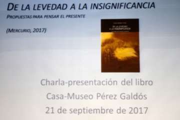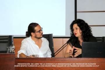 La Casa Museo Pérez Galdós de Las Palmas de Gran Canaria acogió la tarde del jueves, 21 de septiembre, dentro de sus programas culturales para este inicio de temporada 2017-2018 de su agenda de actividades la presentación del libro “De la Levedad a la Insignificancia. Propuestas para pensar el presente”, último trabajo editado en 2017 del filósofo teldense Rubén Benítez Florido, que acaparó el máximo interés y afluencia de público que llenó el salón de actos Josefina de la Torre de la sede capitalina de la Casa Museo Pérez Galdós.