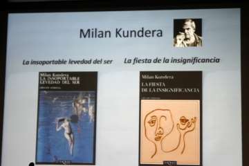 Milán Kundera, uno de los grandes escritores con su novela La insoportable levedad del ser, en la que comprobamos que a lo largo de la novela, Kundera lleva la contraria al propio Nietzsche, demostrando con una novela que la hipótesis del eterno retorno, la piedra angular de la filosofía de Nietzsche, es una incongruencia dentro de su propia filosofía, acaba afirmando lo que él niega o niega lo que él afirma. Otra novela, La fiesta de la insignificancia, cuyo título de mi libro es un homenaje a Kundera.
