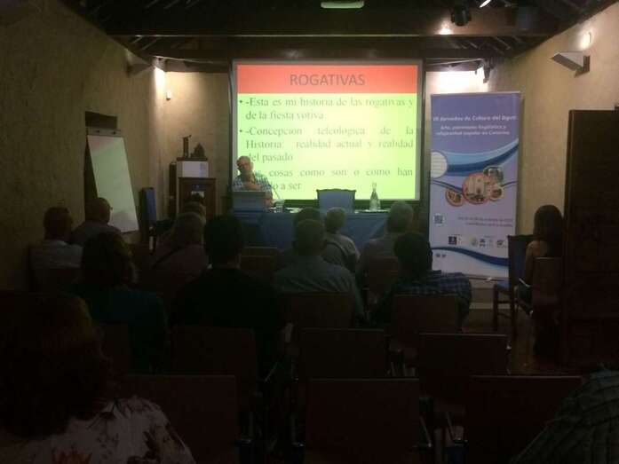 El conferenciante hizo un recorrido por las manifestaciones religiosas ligadas al agua producto del carácter agrario de Canarias, una panorámica de la que también forman parte catástrofes naturales como las sequías, las invasiones de langosta, los volcanes y las epidemias.