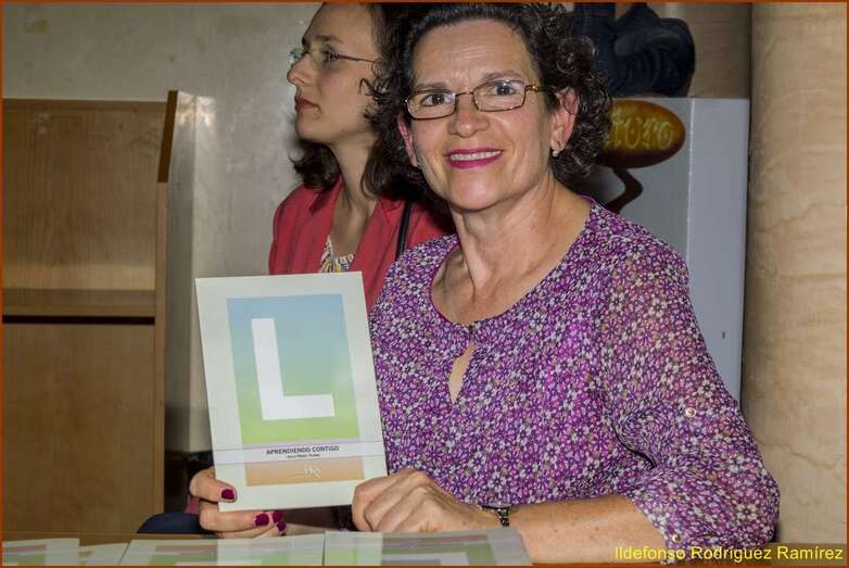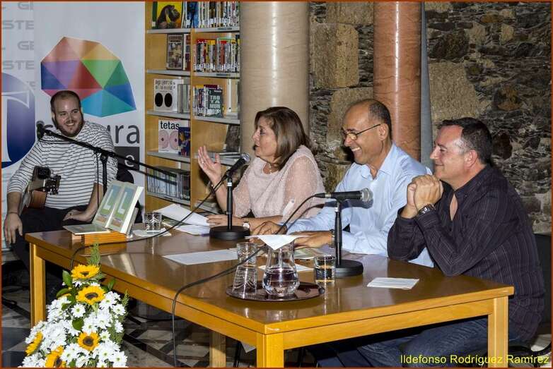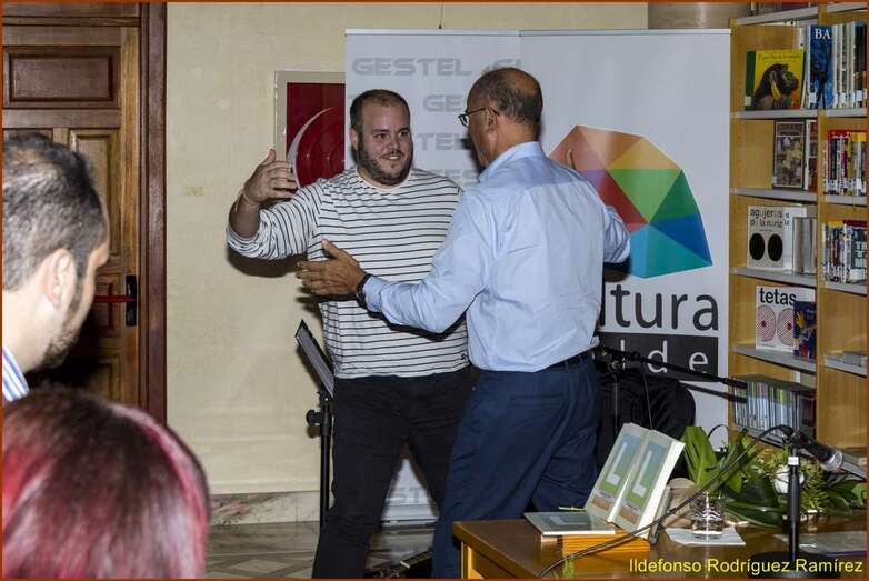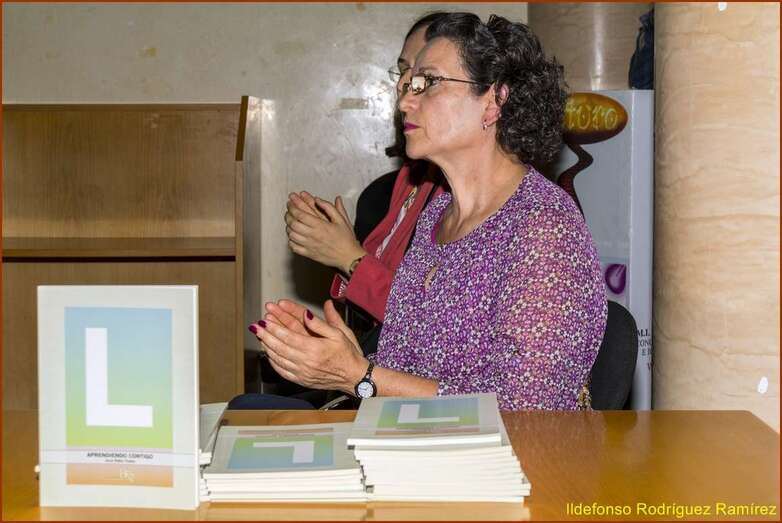 Tras otra pausa musical, la poeta teldense Guadalupe Santana abordó la presentación de Aprendiendo contigo desde tres puntos de vista: el humano, el profesional (Julio Pérez ha sido Profesor de Formación Vial durante treinta y siete años) y el literario. En todos los casos la presentadora ponderó la valía del autor, que recalcó con la lectura de fragmentos del libro.