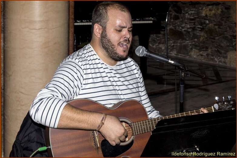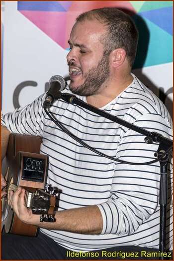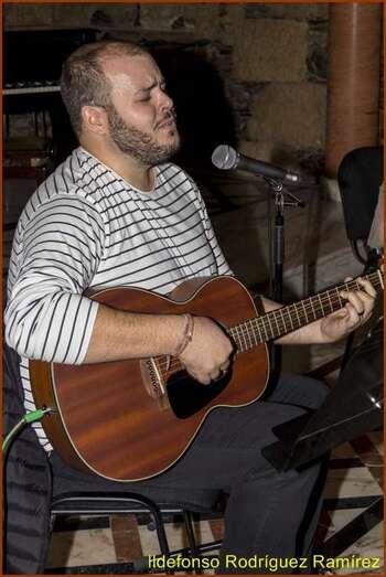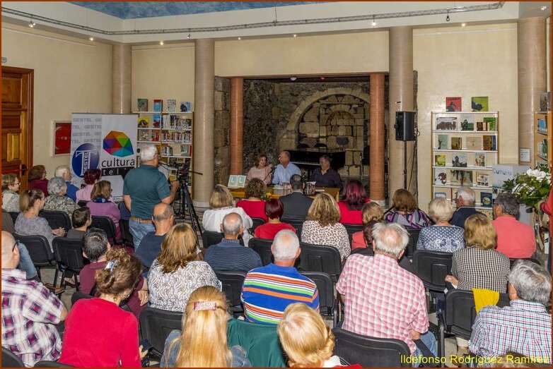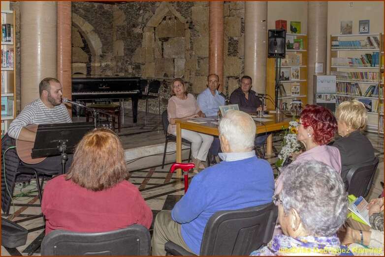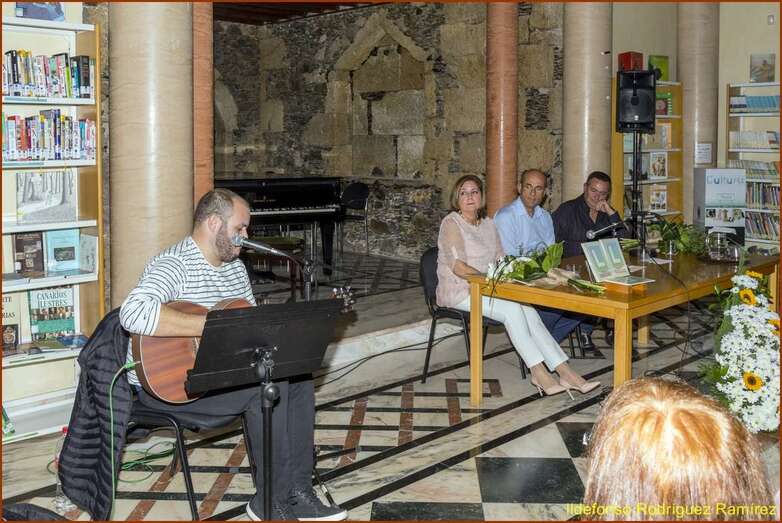 Ante una nutrida asistencia de pública que prácticamente el aforo de la sala del recinto bibliotecario de Arnao, el cantautor teldense Rubén Rodríguez fue el encargado de abrir el acto, con la interpretación de un tema de su autoría.