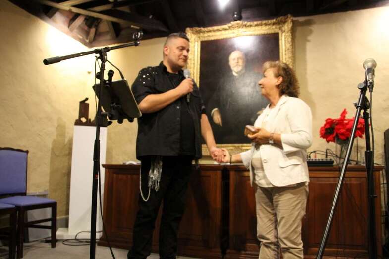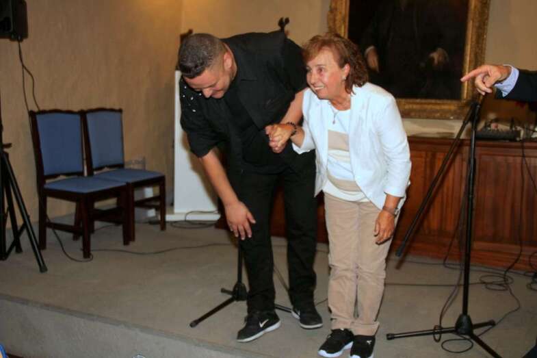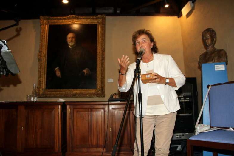 Pino Monzón Padrón, alma mater de tantos y tantos encuentros de diferentes ámbitos culturales, folclorista, compositora, escritora, pedagoga, ex directora durante más de treinta años de la Agrupación Folclórica Arnao, con un amplio repertorio de su creación musical llevada a la grabación de varios CDs, el último El Seis de Copas, presentado recientemente en el Teatro Juan Ramón Jiménez de Telde. Actualmente dirige el Grupo de Folk Gaura, cuenta en su haber con numerosos premios y reconocimientos institucionales por su labor en pro de la cultura e identidades canarias.