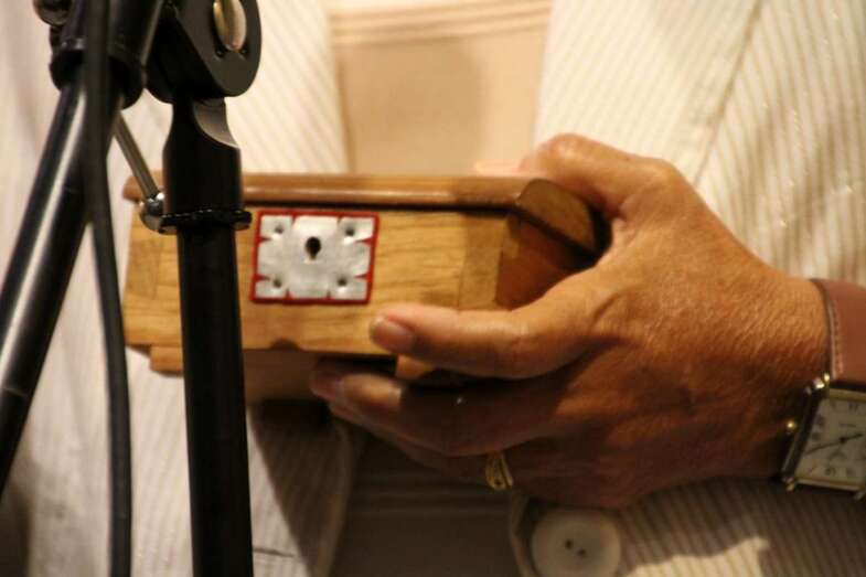 Muy cerca del final de la extracción de títulos del pequeño baúl en las manos de Pino Monzón, aún quedan ganas de seguir escuchando hasta el final este bonito concierto que va finalizando con un tema del año 1966, Gracias a la Vida, compuesta y cantada por la cantautora chilena, Violeta Parra (Chile, 1917-1967). Cantando a la Vida, con mucha ilusión, y aunque el mundo fue ingrato con ella, creó un himno humanista, de gratitud a la Vida, con la paradoja de que ella misma dijo adiós al año de componer este precioso himno. Una de las más bellas canciones chilenas conocidas e interpretadas en el mundo, Joan Báez, Mercedes Sosa: Gracias a la vida que me ha dado tanto/ me dio dos luceros que cuando los abro/ Perfecto distingo lo negro del blanco/ y en el alto cielo su fondo estrellado/ y en las multitudes el hombre que yo amo/.