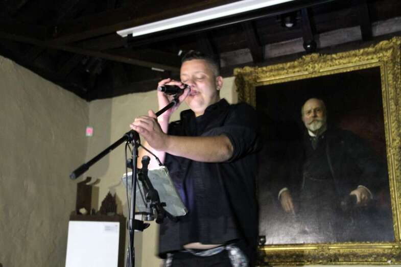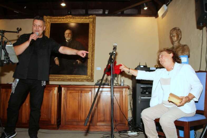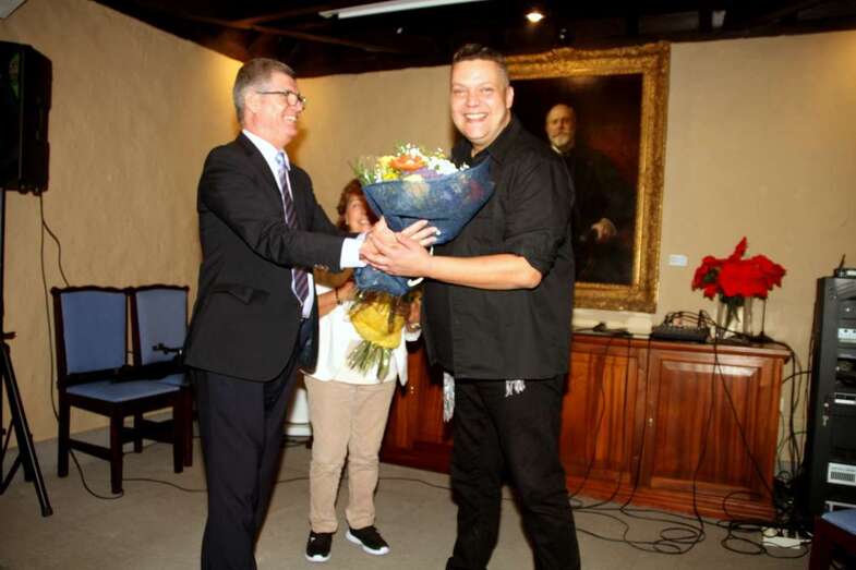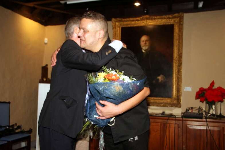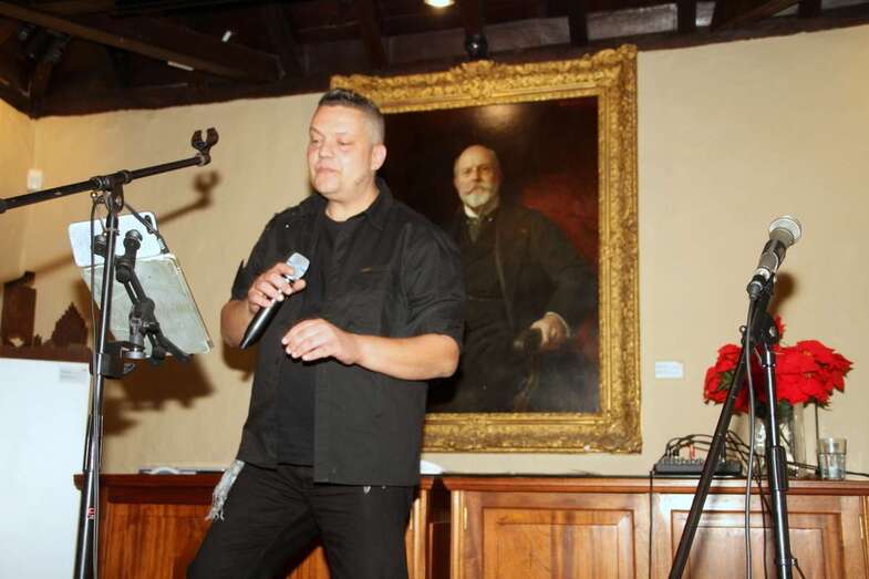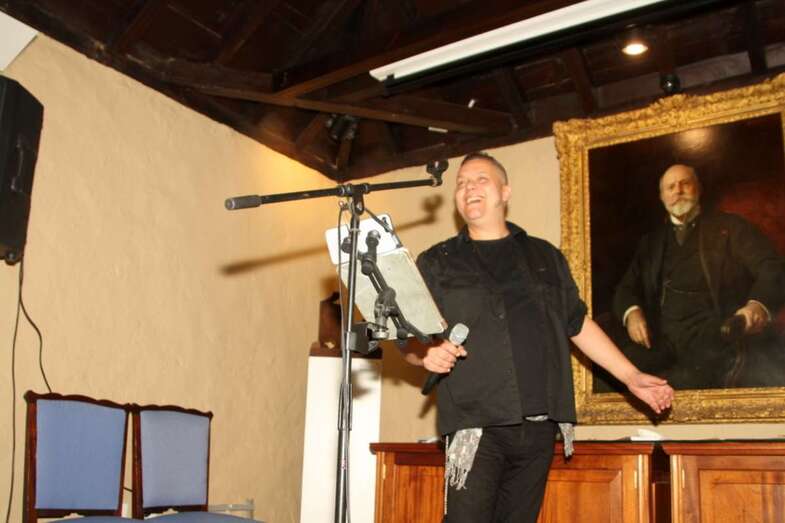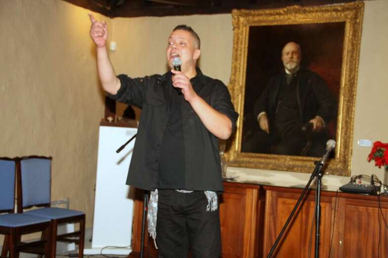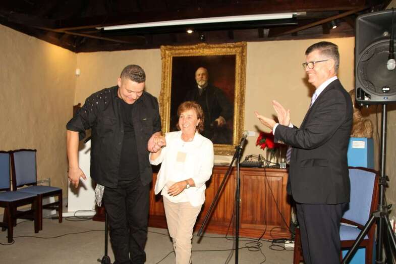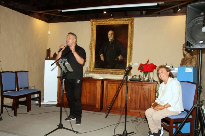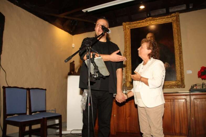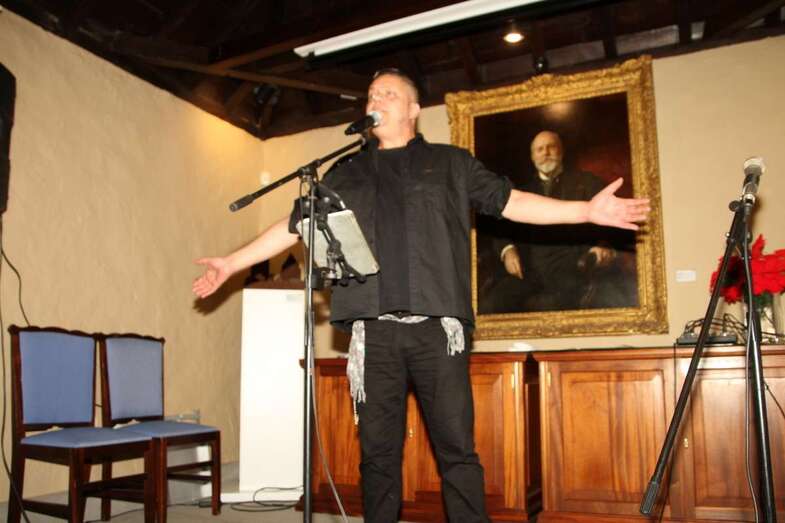 Ya, en el escenario del Salón de actos, ante el cuadro de Fernando de León y Castillo que preside esta estancia, Gustavo Carreño, cantante canario, teldense por más señas, interprete de bellísimas melodías que en más de una ocasión ya nos sorprendió por su excelente buen hacer músico vocal en el Patio Central de esta Institución Museística, como el Encuentro de Habaneras el pasado mes de junio, hoy regresa para deleitarnos con este escogido repertorio orquestado y temas presentados por Pino Monzón.